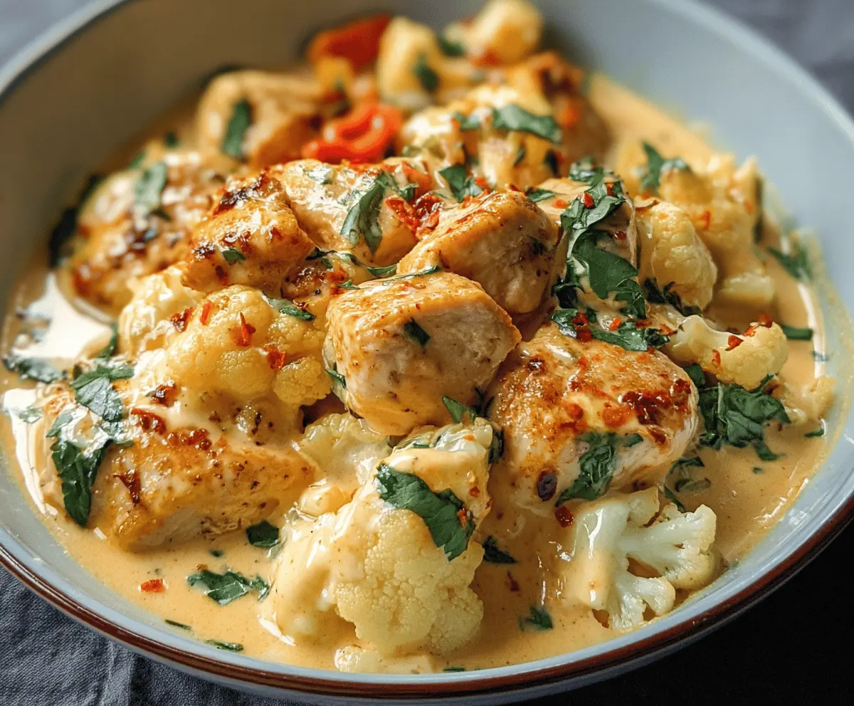 By following these steps, you’ll achieve a creamy chicken and cauliflower dish that’s both delicious and visually appealing! Enjoy your cooking!