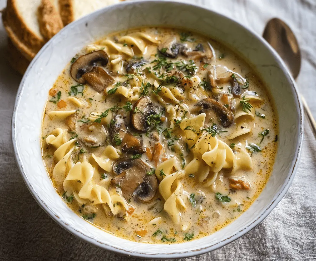 Delicious Creamy Mushroom Pasta Soup
